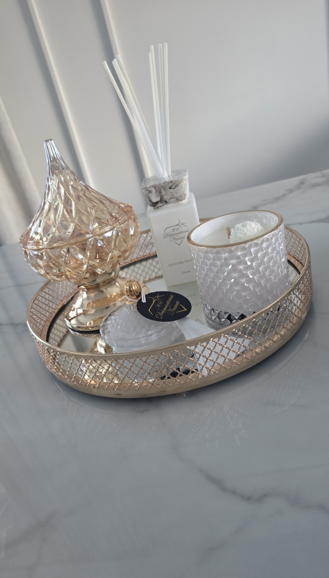 Rinkinys „Akimirka“ – tai prabangus ir subtilus namų kvapų derinys, sukuriantis šiltą, jaukią atmosferą bei išskirtinį interjero akcentą.