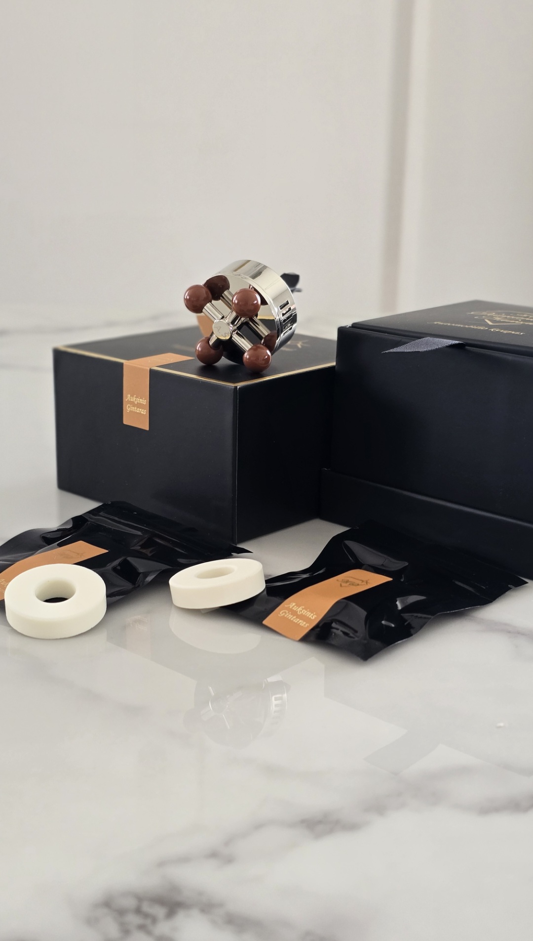 Metalinis laikiklis yra daugkartinio naudojimo – pasibaigus mėgstamam kvapui, jį galima papildyti nauja arba dar neišbandyta prabangių aromatų kapsule.