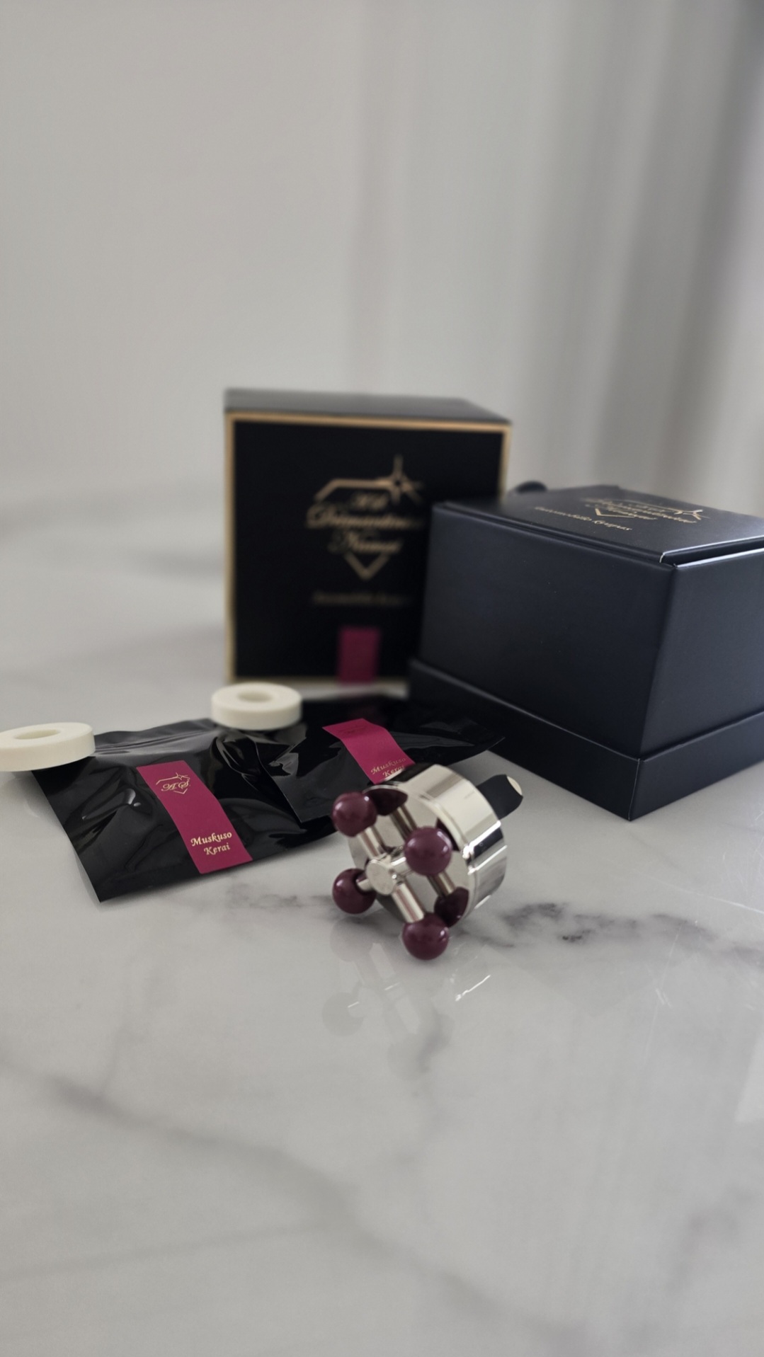 Metalinis laikiklis yra daugkartinio naudojimo – pasibaigus mėgstamam kvapui, jį galima papildyti nauja arba dar neišbandyta prabangių aromatų kapsule.