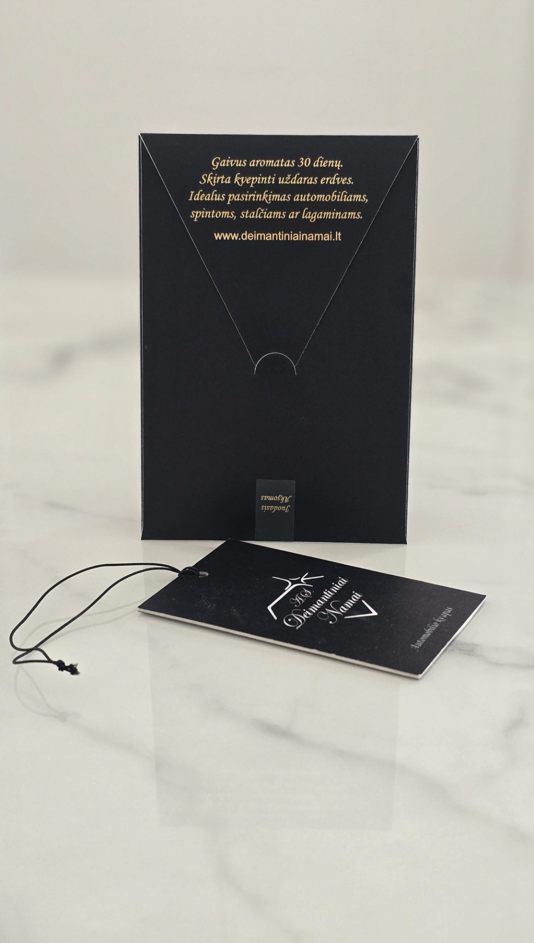 Stilinga kabinama kvapų kortelė, suteikianti prabangos, paslapties ir jaukumo pojūtį bet kurioje uždaroje erdvėje. Subtilus aromatas maloniai pripildo automobilį, spintą, stalčių ar lagaminą švelniu kvapu, kuris išlieka ilgai ir sukuria malonią atmosferą.