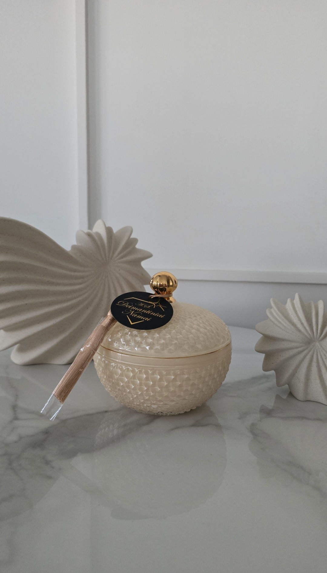 Prabangiai kvepianti, rankų darbo žvakė, pagaminta iš sertifikuoto sojų vaško, naudojant natūralius medvilninius dagčius.