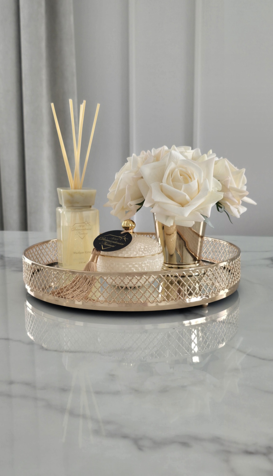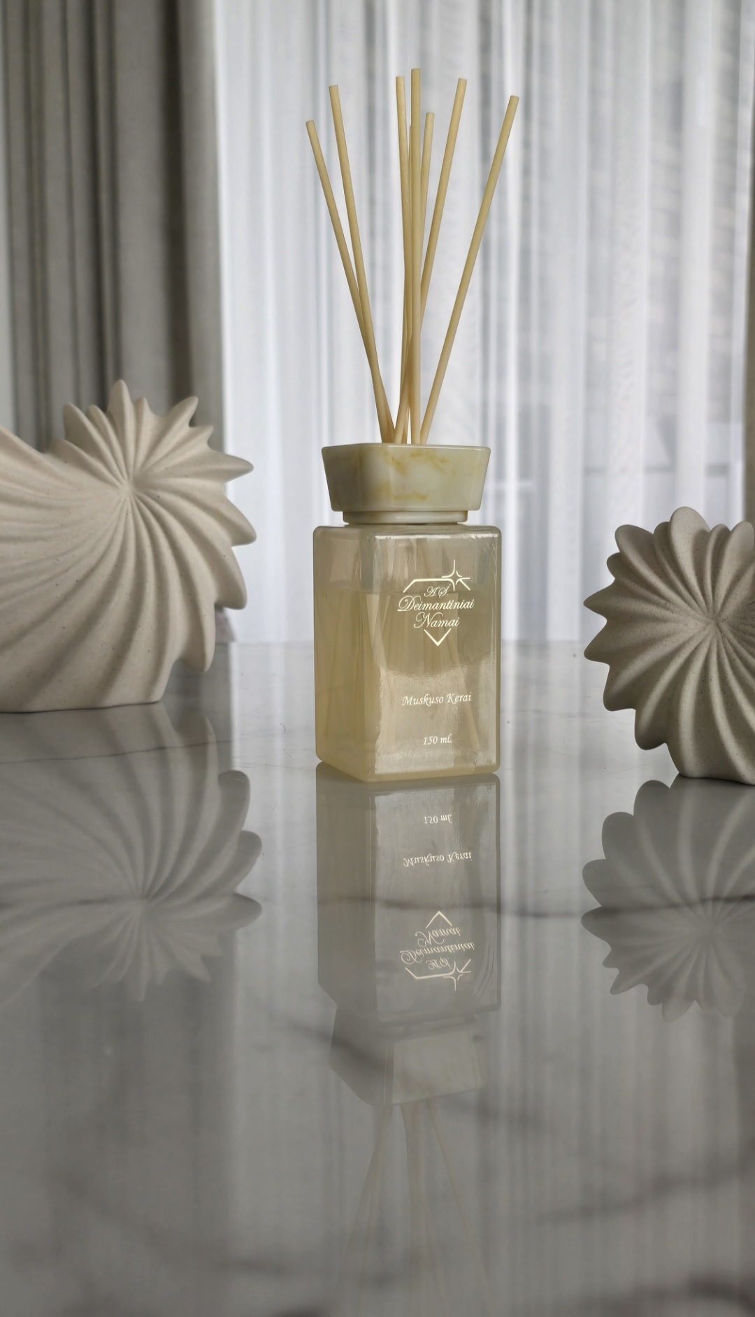 Prabangūs kvapai pakvėpins namus ir sukurs ypatingą nuotaiką, o elegantiškas indas su marmuro efekto kamščiu papuoš kiekvieną interjerą.