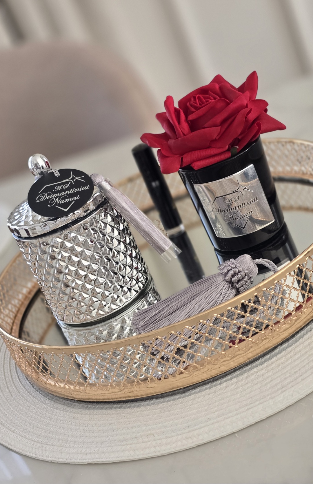 Rinkinys „Paliesk mane“ – tai prabangus ir subtilus namų kvapų derinys, sukuriantis šiltą, jaukią atmosferą bei išskirtinį interjero akcentą.