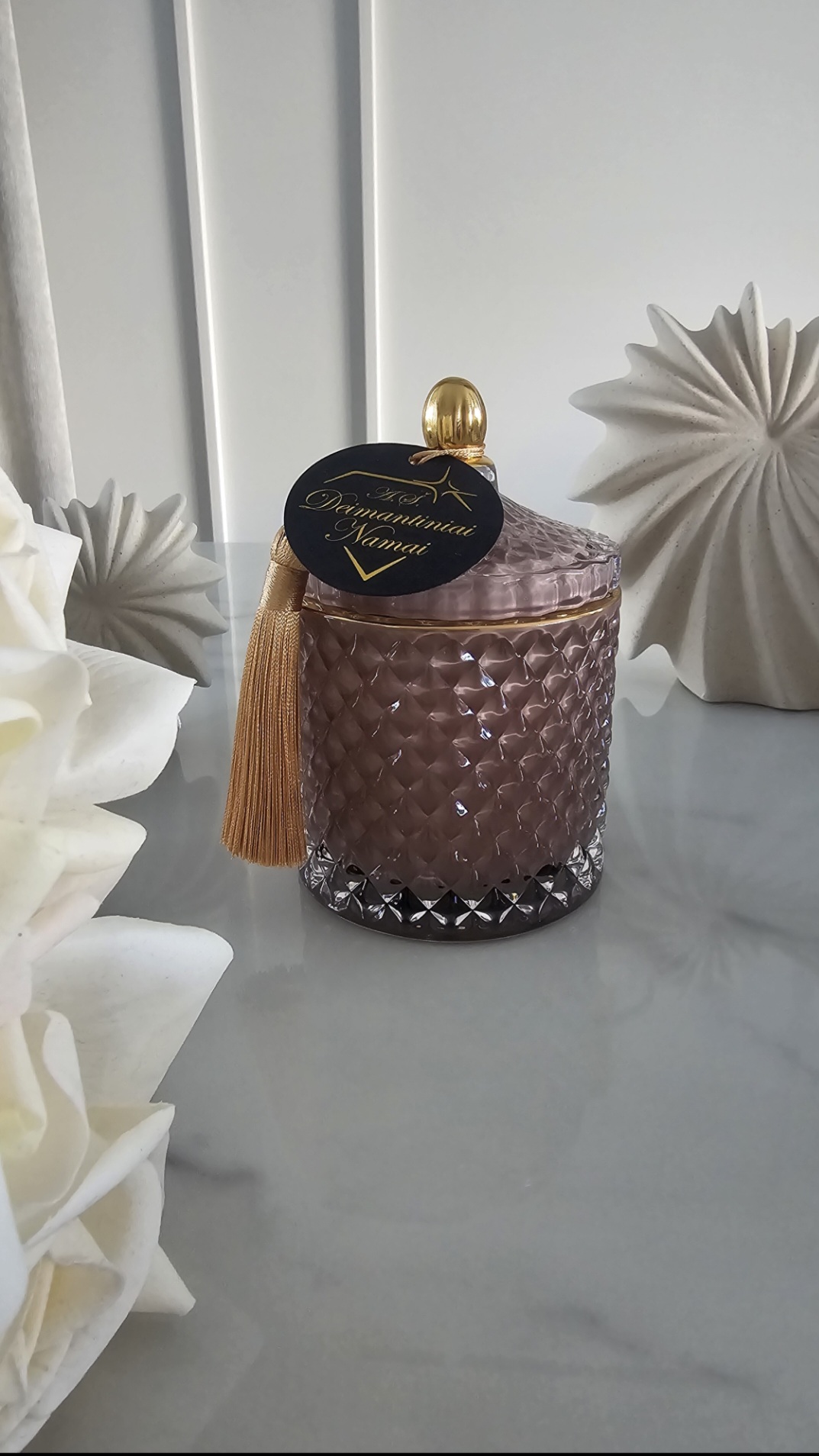 Prabangiai kvepianti, rankų darbo žvakė, pagaminta iš sertifikuoto sojų vaško, naudojant natūralius medvilninius dagčius.