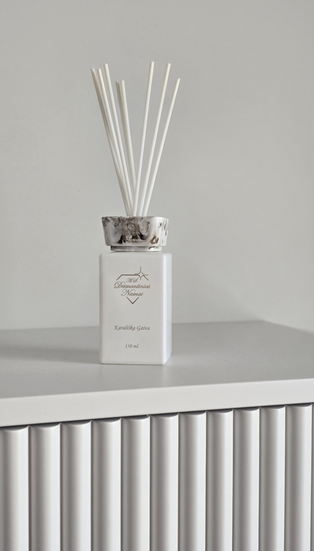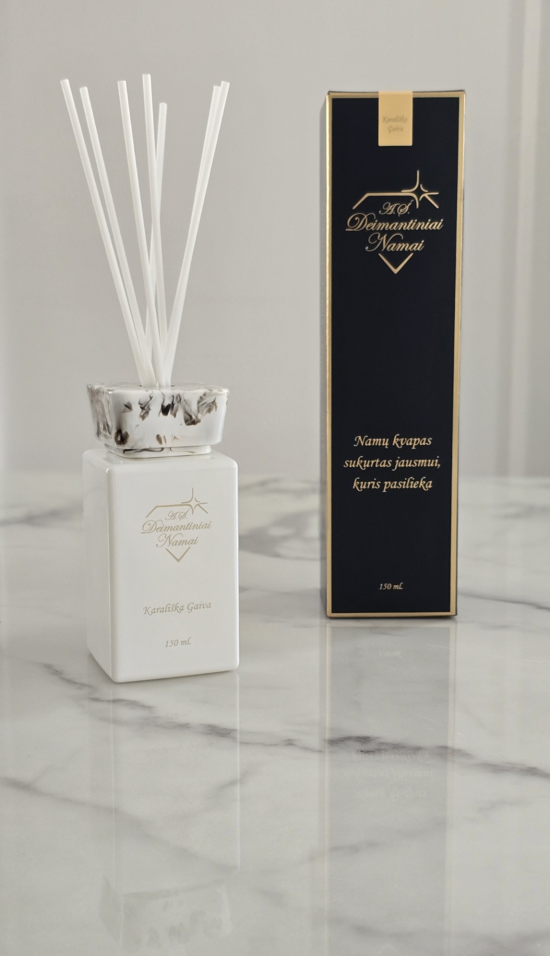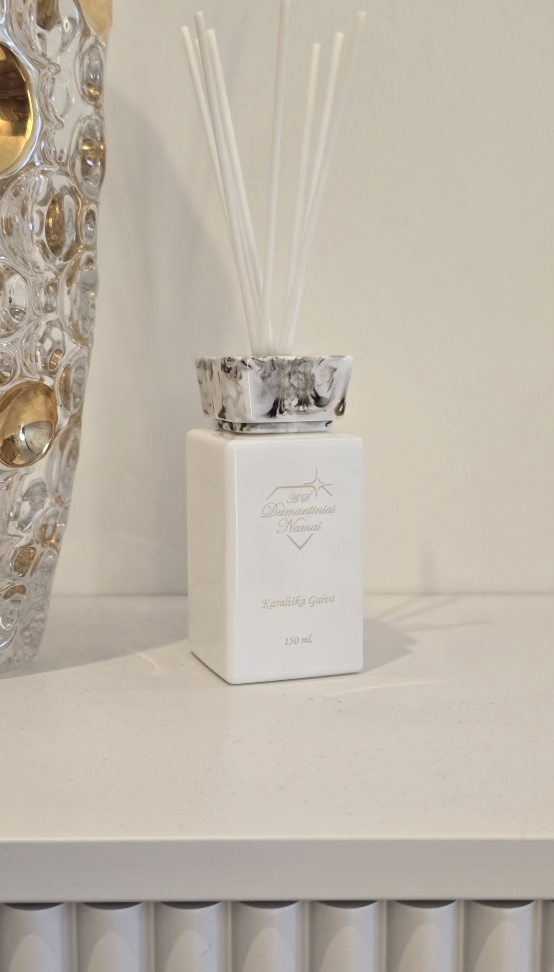 Prabangūs kvapai pakvėpins namus ir sukurs ypatingą nuotaiką, o elegantiškas indas su marmuro efekto kamščiu papuoš kiekvieną interjerą.