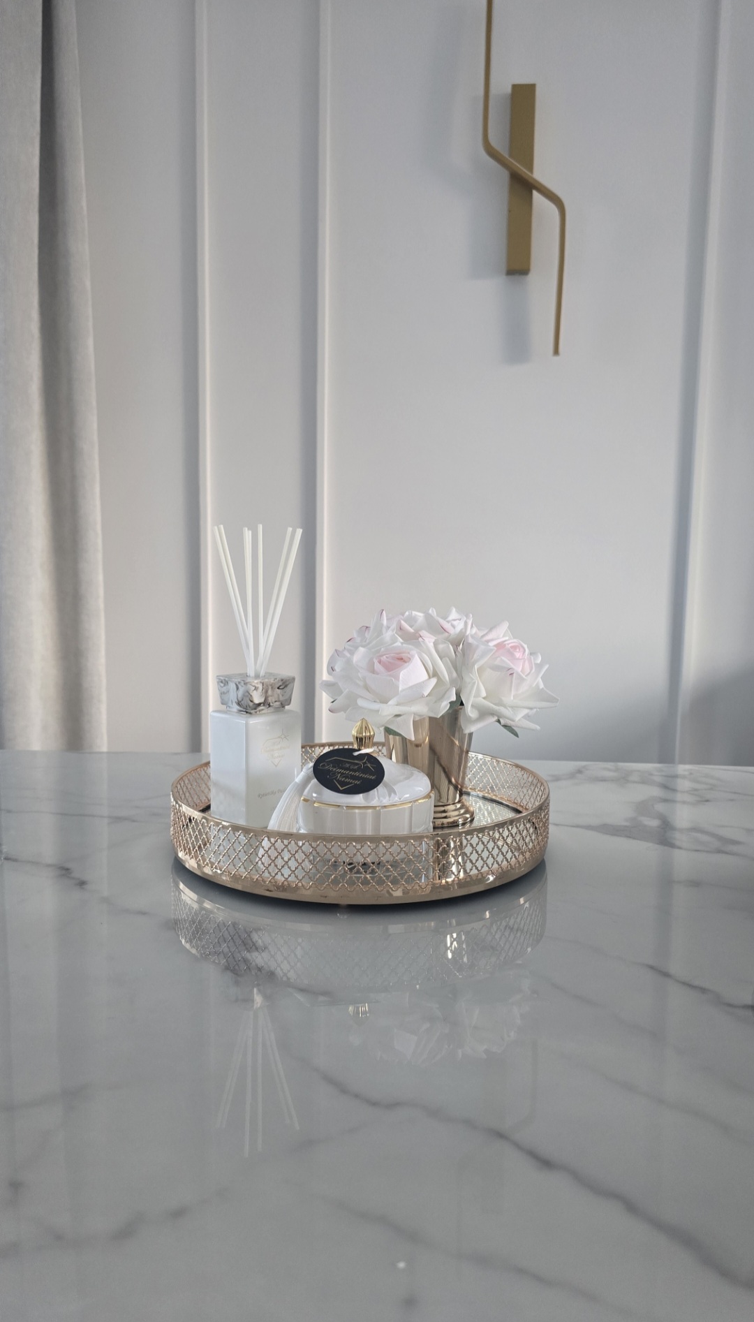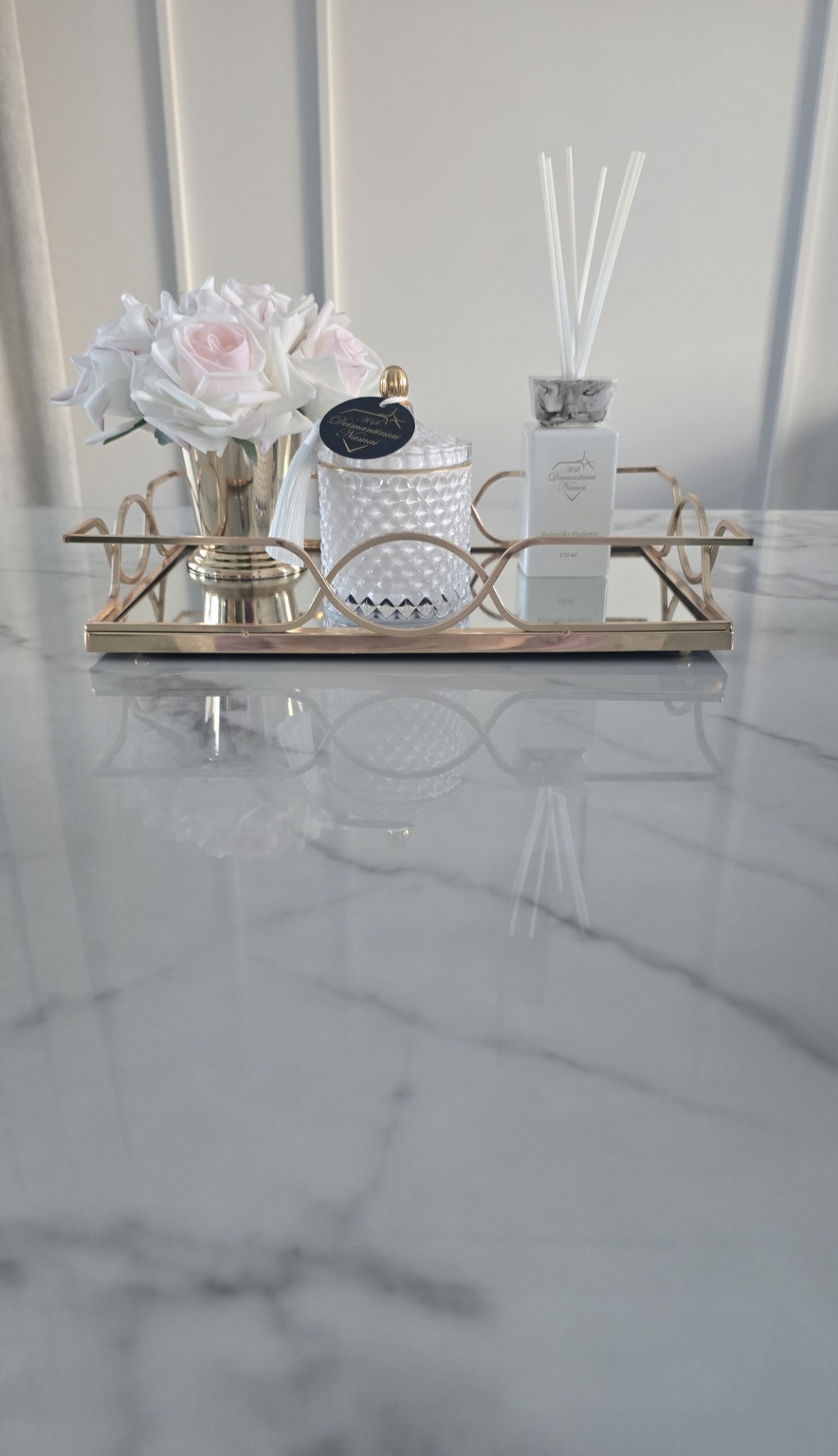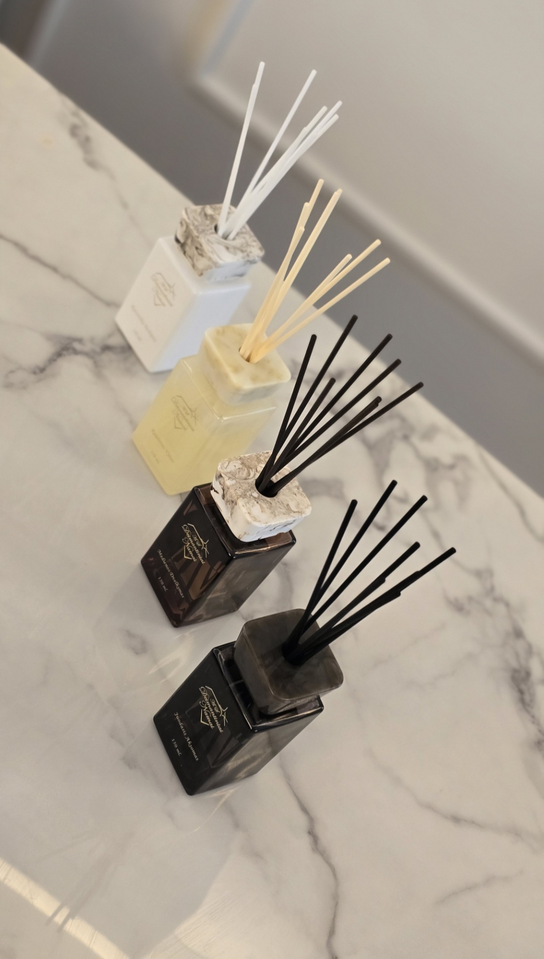 Prabangūs kvapai pakvėpins namus ir sukurs ypatingą nuotaiką, o elegantiškas indas su marmuro efekto kamščiu papuoš kiekvieną interjerą.