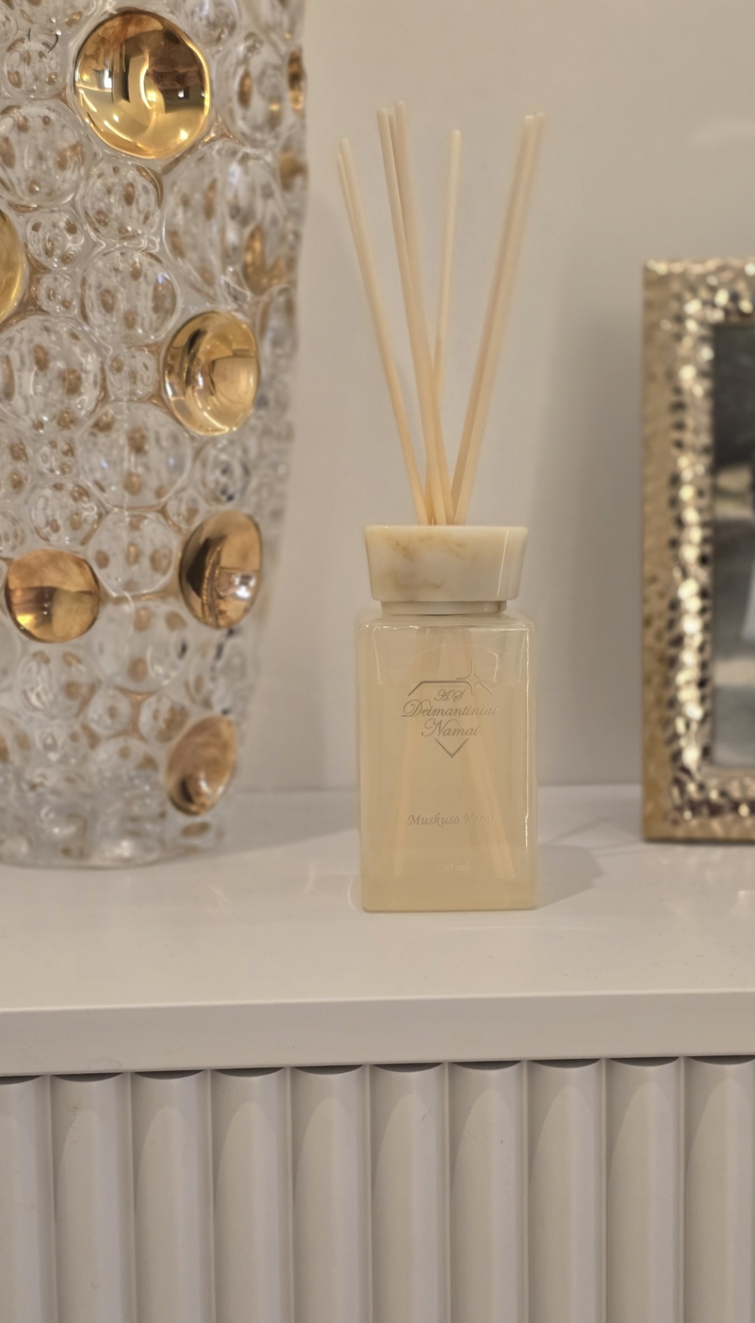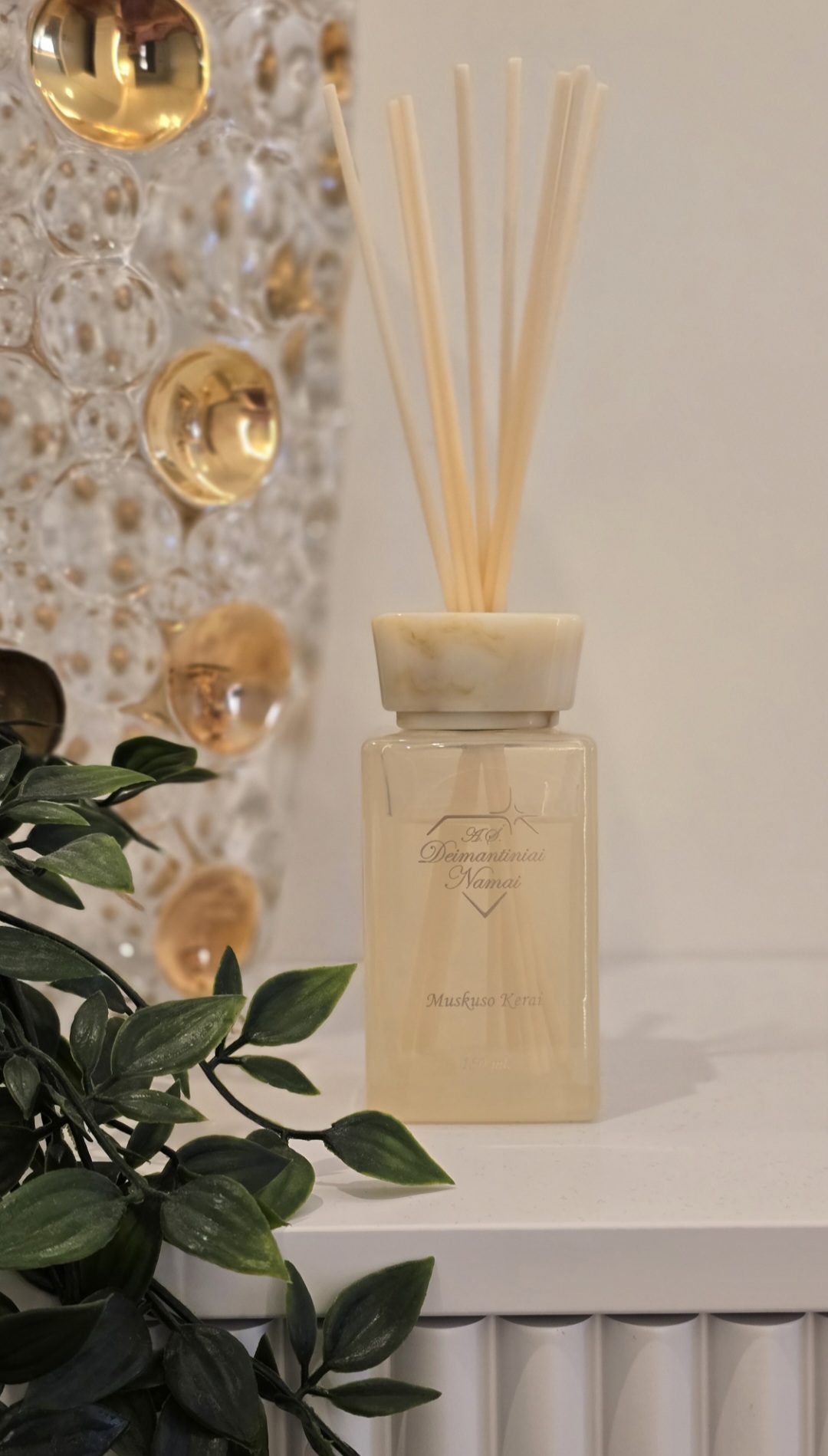Prabangūs kvapai pakvėpins namus ir sukurs ypatingą nuotaiką, o elegantiškas indas su marmuro efekto kamščiu papuoš kiekvieną interjerą.