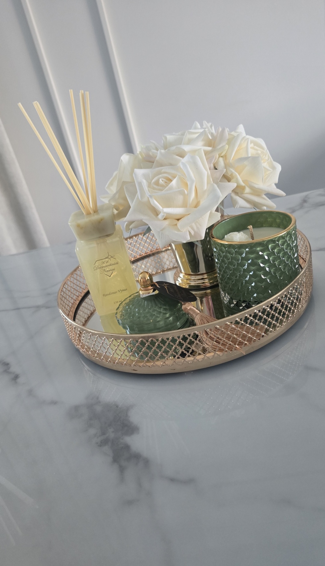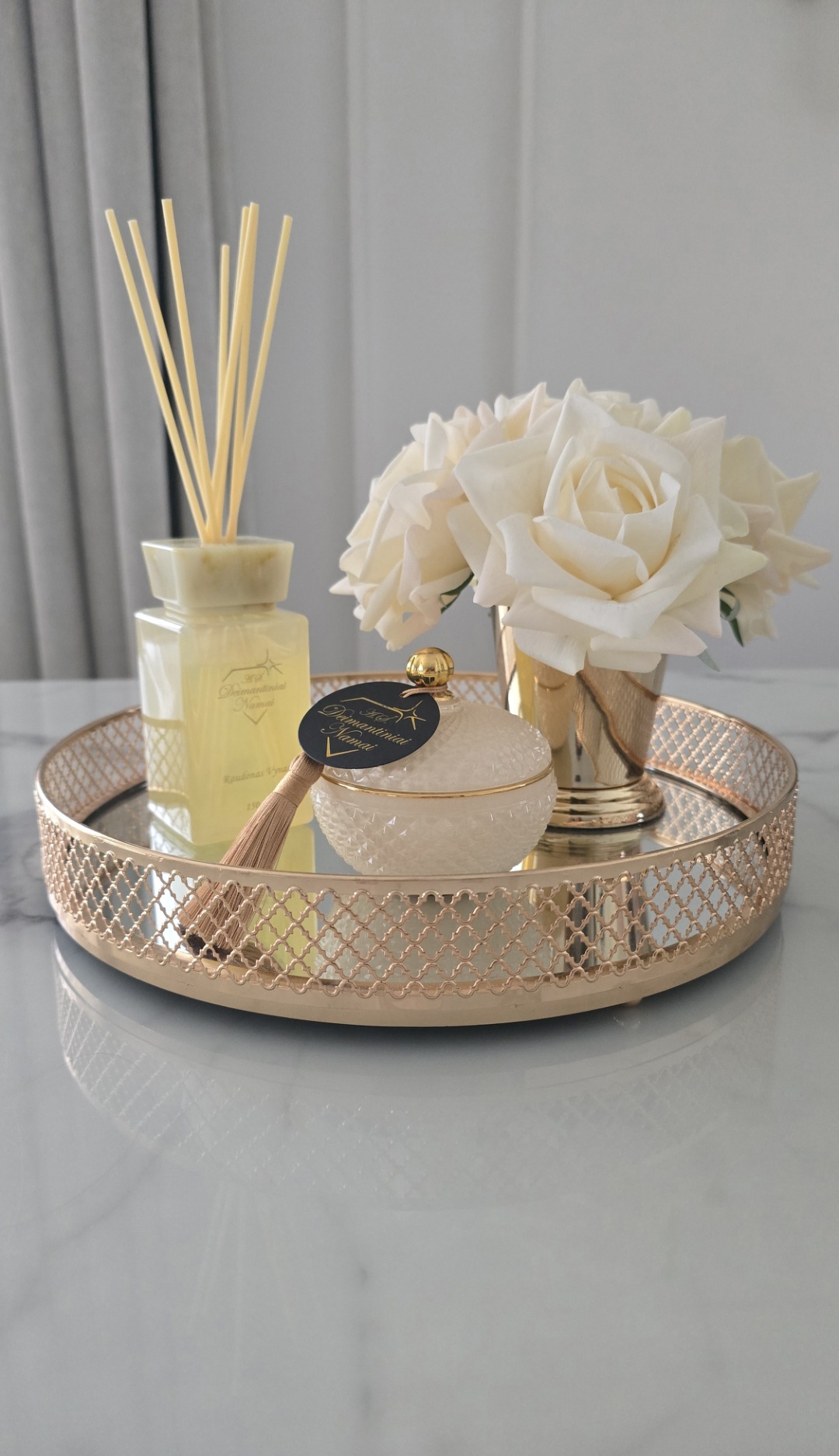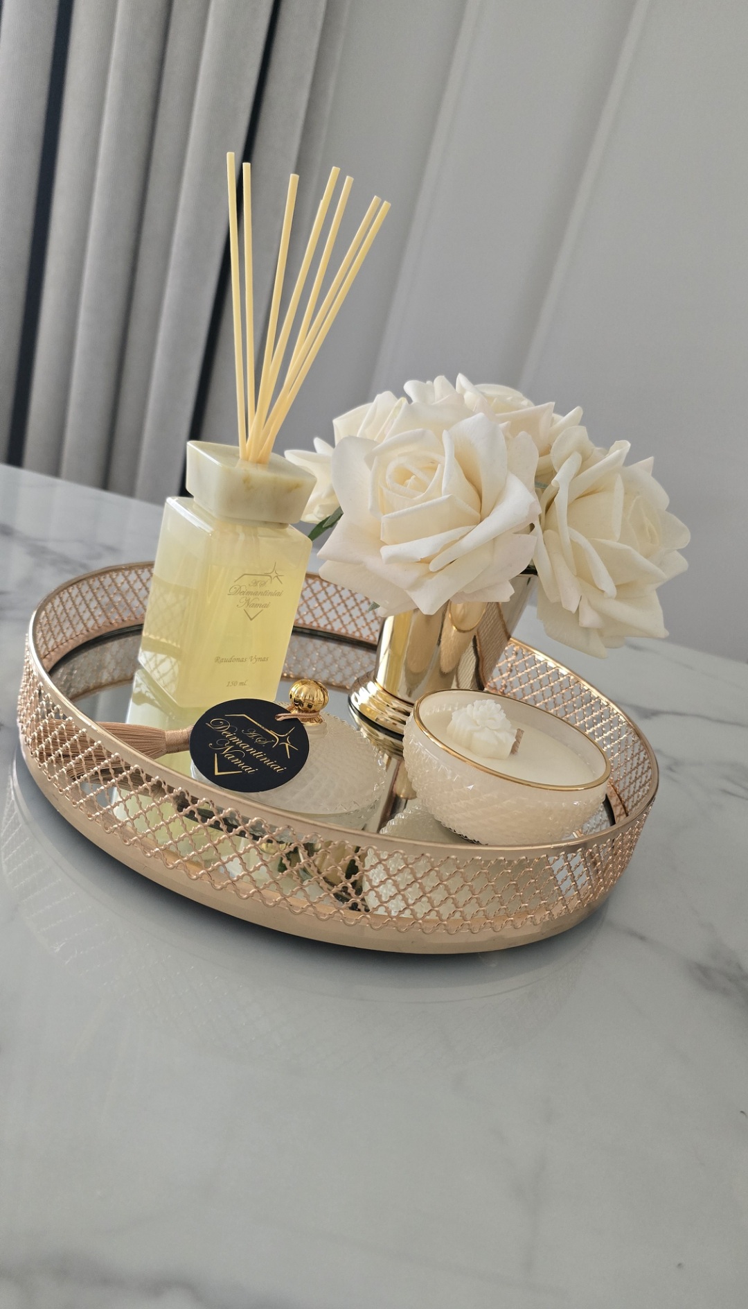Puošnus namų akcentas – stilingas padėklas, kuris suteiks jūsų interjerui elegancijos ir tvarkos pojūtį. Jame dailiai atrodys žvakės, žvakidės, kosmetikos priemonės ar kitos malonios smulkmenos.
